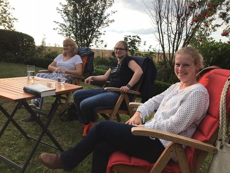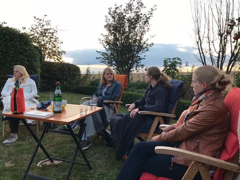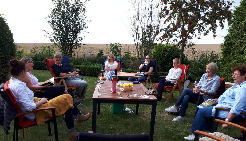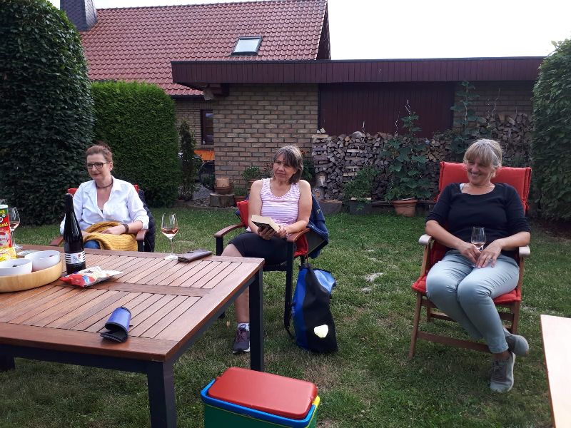 Meistens sind wir 8-10 Teilnehmer/innen - so viele, wie in ein Wohnzimmer oder im Sommer um den Gartentisch passen. Wir bringen unsere augenblickliche Lektüre oder auch Lieblingsbücher mit, die wir uns gegenseitig vorstellen.