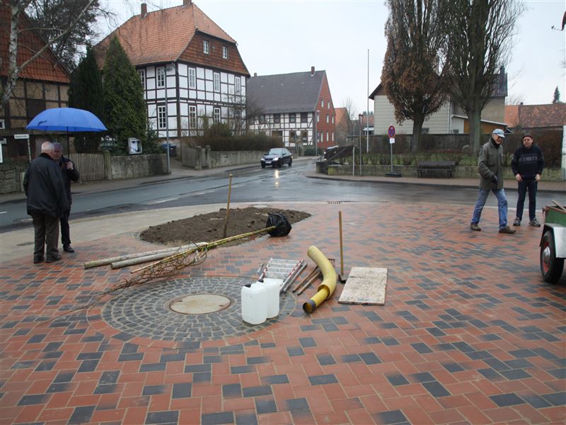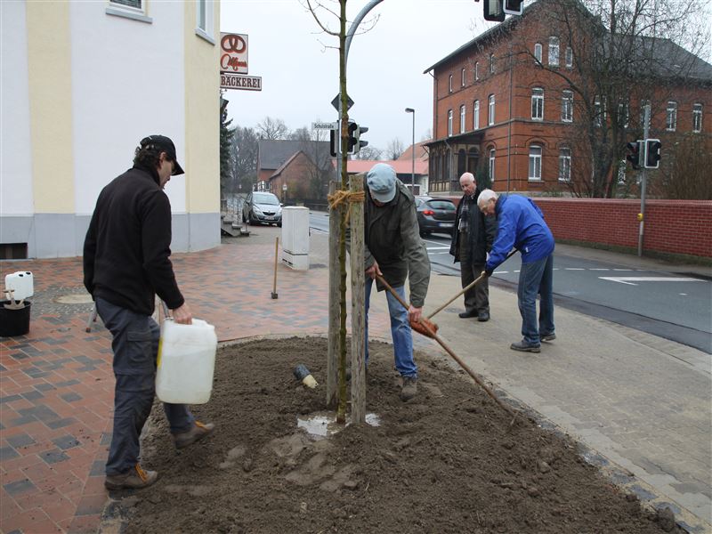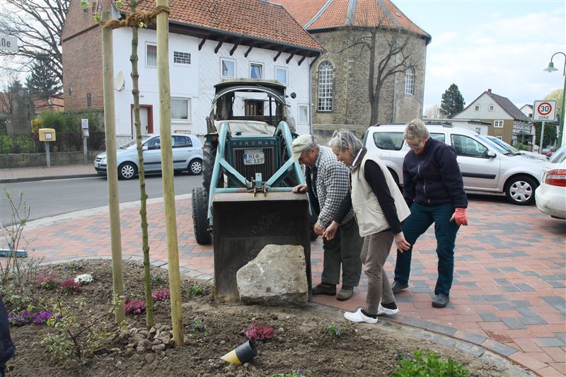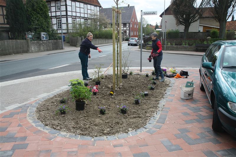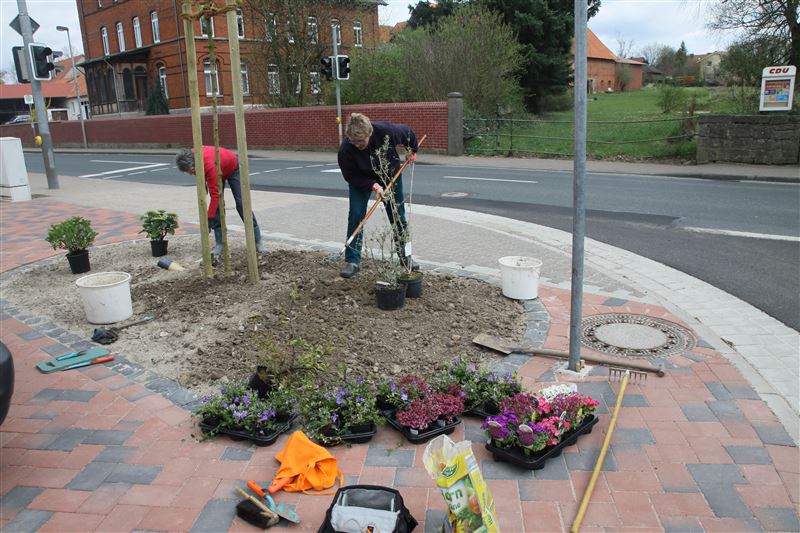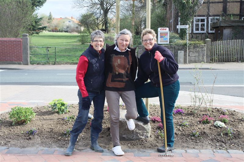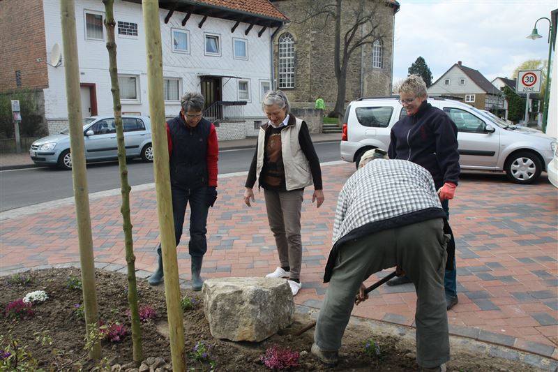 Es schwingen Schaufel und Harke: Katrin Franke, Ilse-Marie Maas, Karin Achenbach und Angela Grapentin mit Unterstützung von Dietrich Wilhelm (17. April 2015).